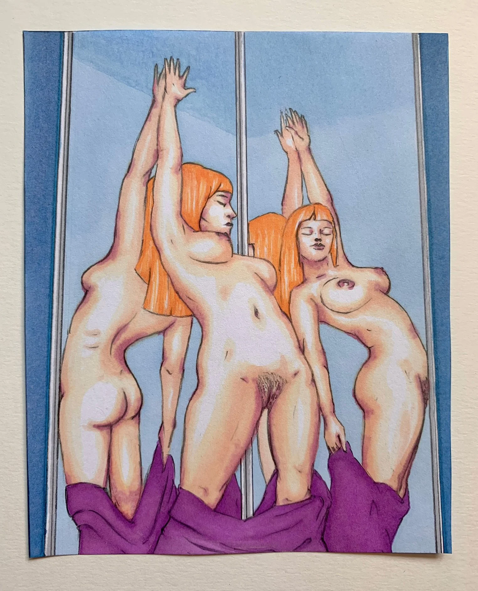 The picture was inspired by late 60s pinup photography, more specifically by model, dancer and an actress Michelle Angelo. I wanted to depict a beautiful female form from several angles at once, so the photograph i used for reference fit the bill nicely.
